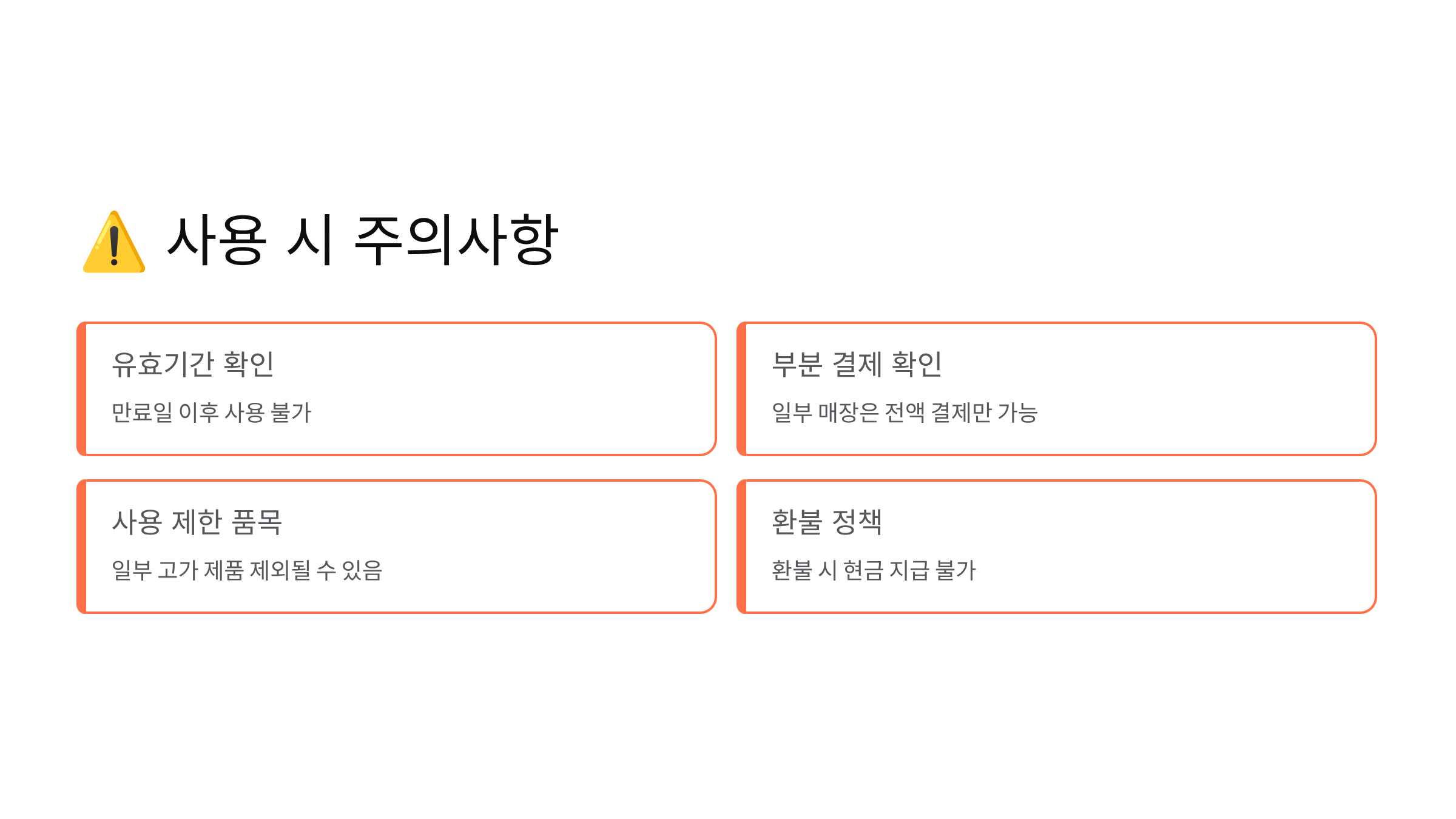 민생지원금을 사용할 때 몇 가지 주의할 점이 있어요. 이걸 모르고 갔다가 결제 거절 당하면 기분 상하겠죠? 😅