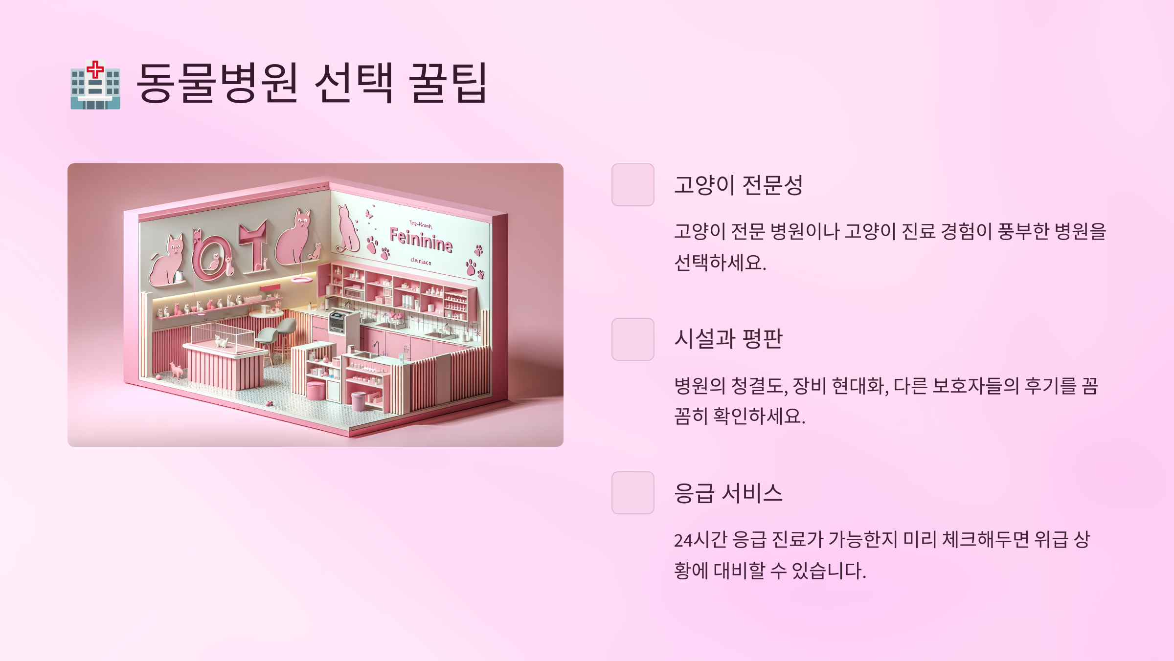좋은 병원 선택이 곧 고양이의 건강을 지키는 첫걸음이에요! 신중하게, 꼼꼼하게 살펴보세요. 🏥💙